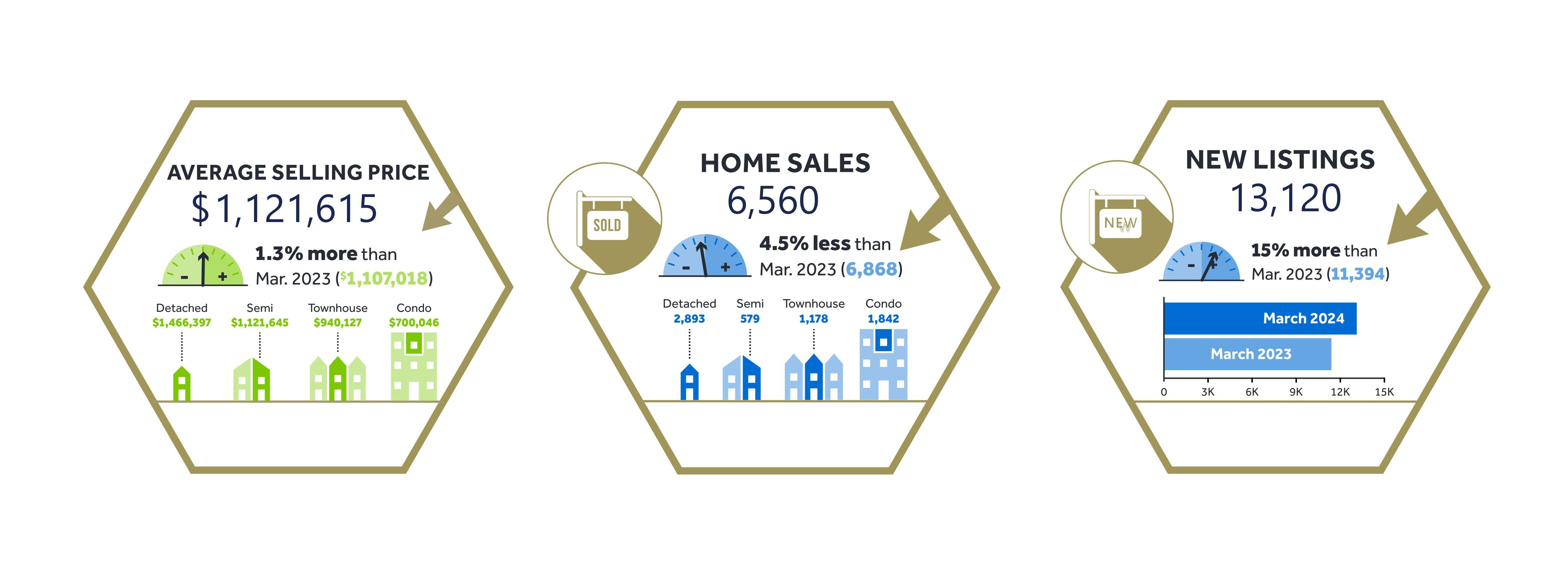 But wait, there's more! Home prices edged up by 0.3% year-over-year. The average selling price? A cool 1.3% increase, hitting $1,121,615! That's not all - it also rose by 0.7% from February!